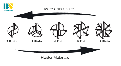চার্ট তুলনা করার পরে, আমরা দেখতে পারি যে কাটিং প্রান্তে কম বাঁশি সহ এন্ড মিলগুলি আরও ভাল চিপ ক্লিয়ারেন্স প্রদান করবে, যখন আরও বাঁশি সহ এন্ড মিলগুলি আরও সূক্ষ্ম ফিনিশ করতে সক্ষম হবে এবং কঠিন কাটিয়া উপকরণগুলিতে ব্যবহার করার সময় কম কম্পনের সাথে কাজ করতে সক্ষম হবে।