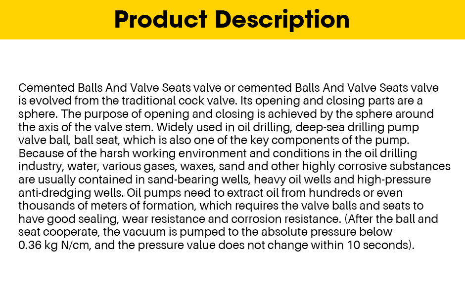 - Weit verbreitet bei Ölbohrungen, Ventilkugeln für Tiefseebohrpumpen und Kugelsitzen