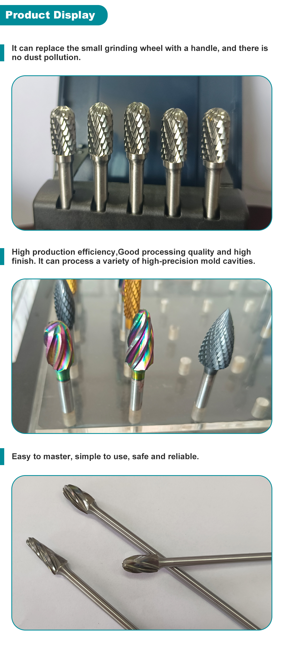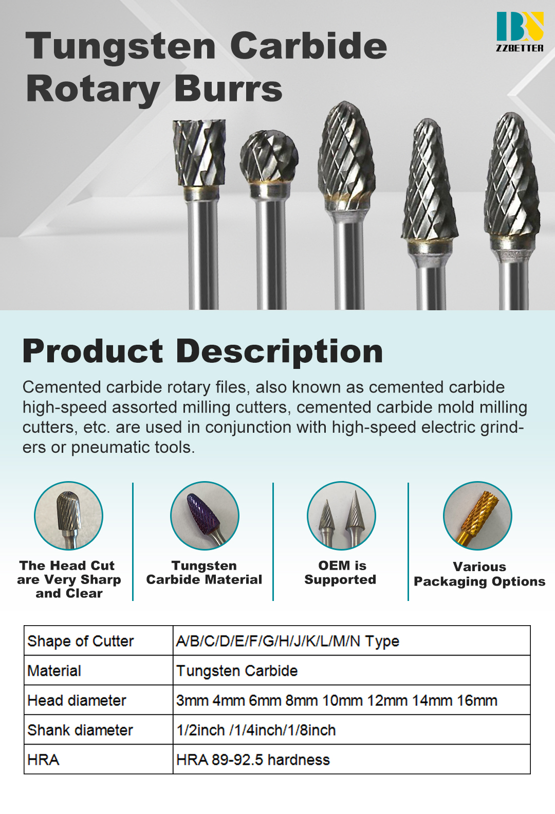 Die Hartmetall-Rotationsfeile kann zur Bearbeitung von Gusseisen, Gussstahl, Kohlenstoffstahl, legiertem Stahl, Edelstahl, gehärtetem Stahl, Kupfer und Aluminium verwendet werden. Da die Hartmetall-Rotationsfeile zur manuellen Steuerung auf ein Hochgeschwindigkeits-Rotationswerkzeug geklemmt wird, werden der Druck und die Vorschubgeschwindigkeit der Hartmetall-Rotationsfeile durch die Lebensdauer und die Schneidwirkung des Werkzeugs bestimmt.