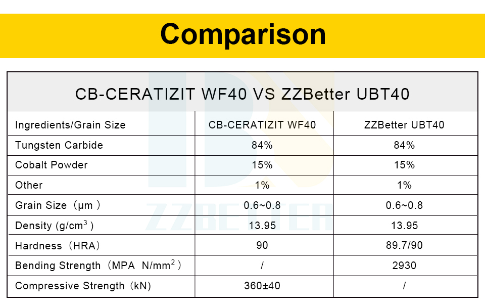 Selle aruande eesmärk on viia läbi CB-CERATIZIT WF40 ja enda väljatöötatud UBT40 üksikasjalik võrdlev analüüs, sealhulgas keemiline koostis, toorained, proportsioonid ja füüsikalised omadused, et paremini mõista kahe toote omadusi ja erinevusi.