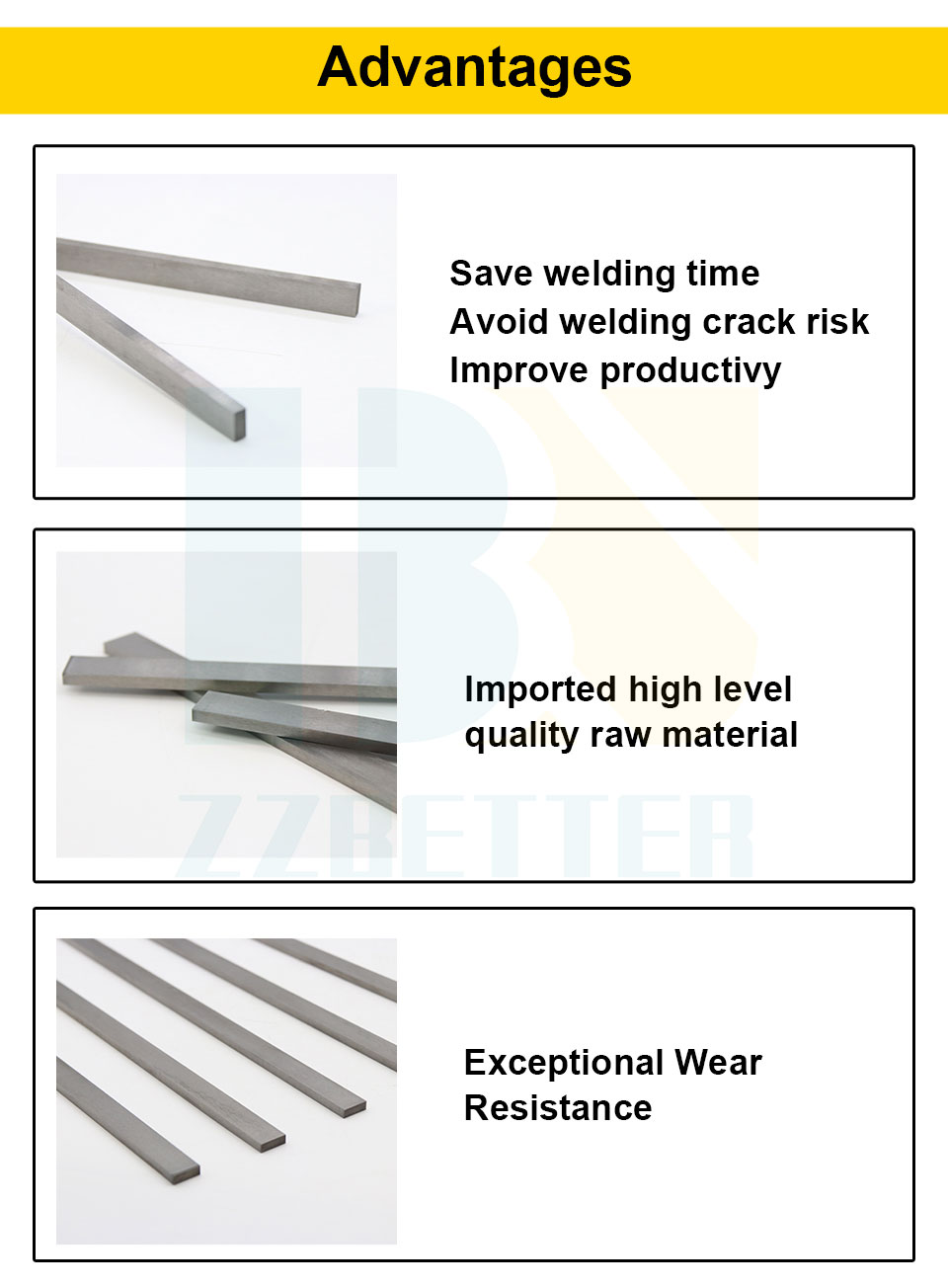 Ribad on valmistatud kvaliteetsetest imporditud segatud materjalidest, tagades järjepidevuse ja stabiilsuse. Täiustatud toorained parandavad jõudlust, võimaldades volframkarbiidil säilitada head lõikamisvõimet isegi suure koormuse ja temperatuuri korral.