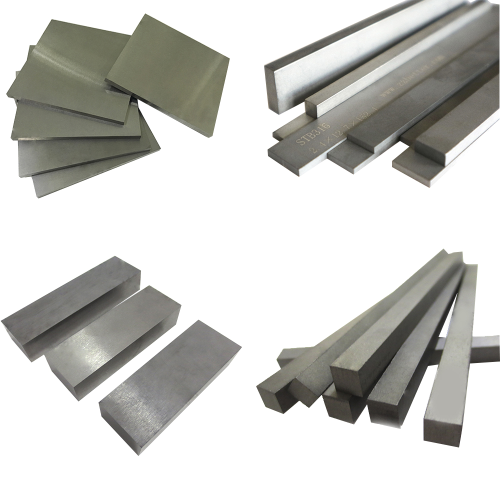Canar cuideachd slatan carbide tungsten ceart-cheàrnach, flataichean carbide tungstain, agus bàraichean còmhnard carbide tungstain.,na thoradh meatailteach sintered ann an cruth pùdar. Tha e air a dhèanamh ann am fùirneisean falamh no lughdachadh hydrogen le pùdar micron stuth Tungsten teasairginn (WC) mar am prìomh ghrìtheid agus Cobalt (Co), Nickel (Ni), no Molybdenum (Mo) mar an inneal-ceangail.
