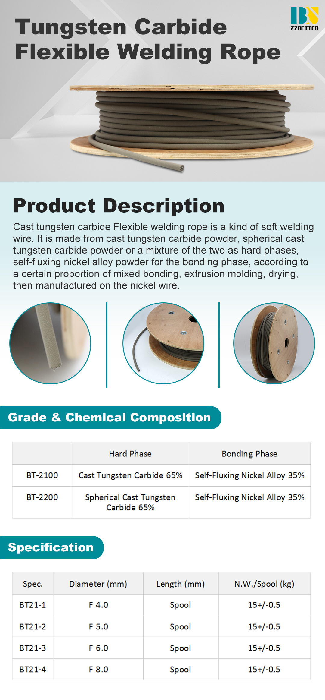 Flexible Welding Rod Cast Tungsten Carbide Welding Rope HF5000 Hardfacing Wire