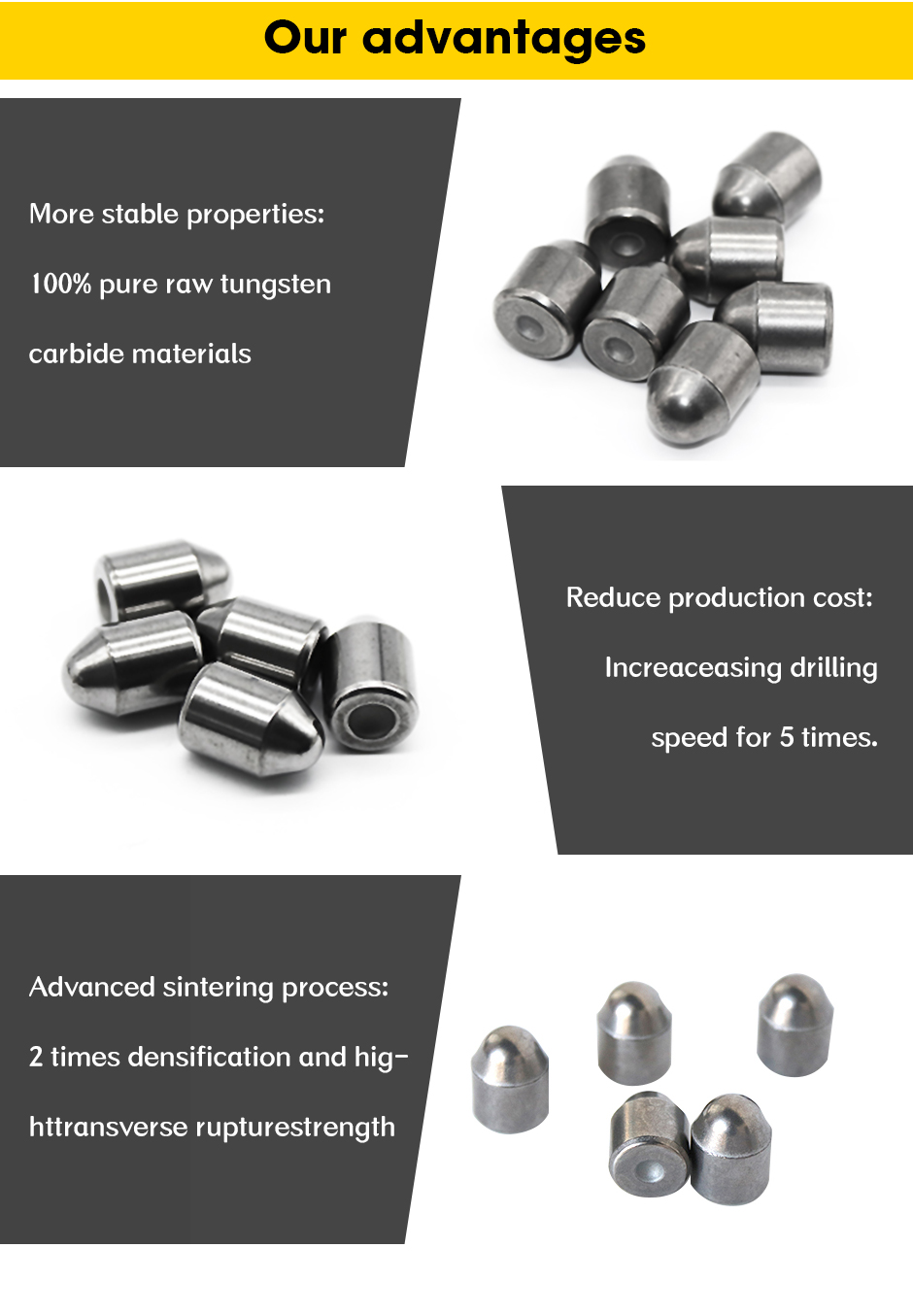 The above-mentioned cemented carbide button of various shapes have their respective ranges of use and working characteristics. What kind of cemented carbide button should be used based on the test and choose the appropriate cemented carbide button shape according to the actual situation.