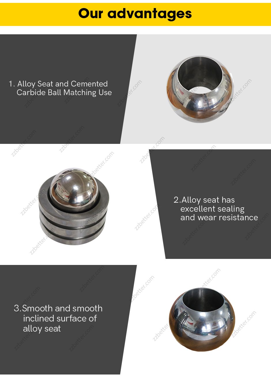 Cemented Balls and Valve Seats Valve or Cemented Balls and Valve Seats Valve is evolved from the traditional cock valve. Its opening and closing parts are a sphere. The purpose of opening and closing is achieved by the sphere around the axis of the valve stem. Widely used in oil drilling, deep-sea drilling pump valve ball, ball seat, which is also one of the key components of the pump. Because of the harsh working environment and conditions in the oil drilling industry, water, various gases, waxes, sand and other highly corrosive substances are usually contained in sand-bearing wells, heavy oil wells and high-pressure anti-dredging wells. Oil pumps need to extract oil from hundreds or even thousands of meters of formation, which requires the valve balls and seats to have good sealing, wear resistance and corrosion resistance. (After the ball and seat cooperate, the vacuum is pumped to the absolute pressure below 0.36 kg N/cm, and the pressure value does not change within 10 seconds).