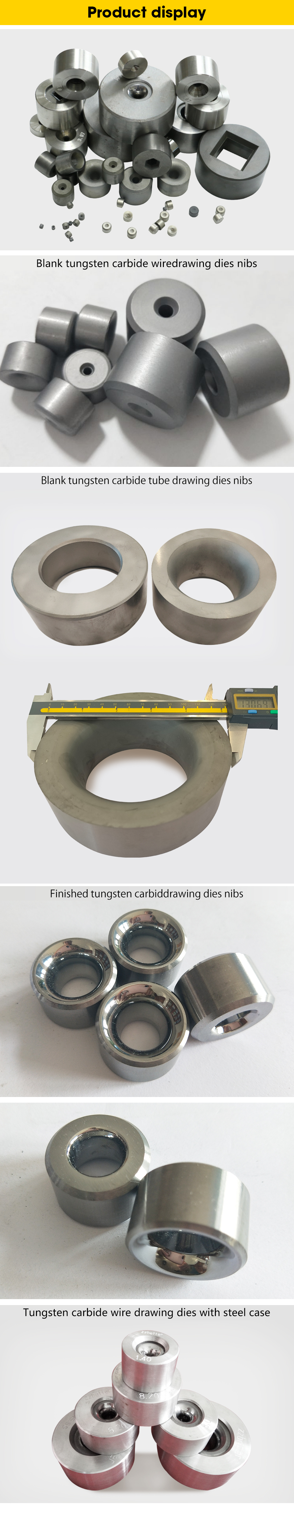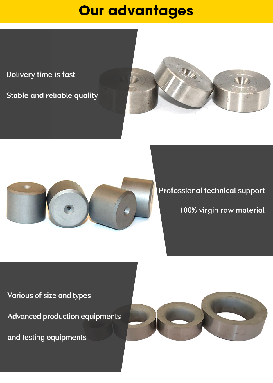 Tungsten carbide drawing dies made of tungsten carbide and cobalt. It have good wear resistance, high toughness.Then widely used to drawing steel, copper, stainless steel ,aluminum wires and tubes.