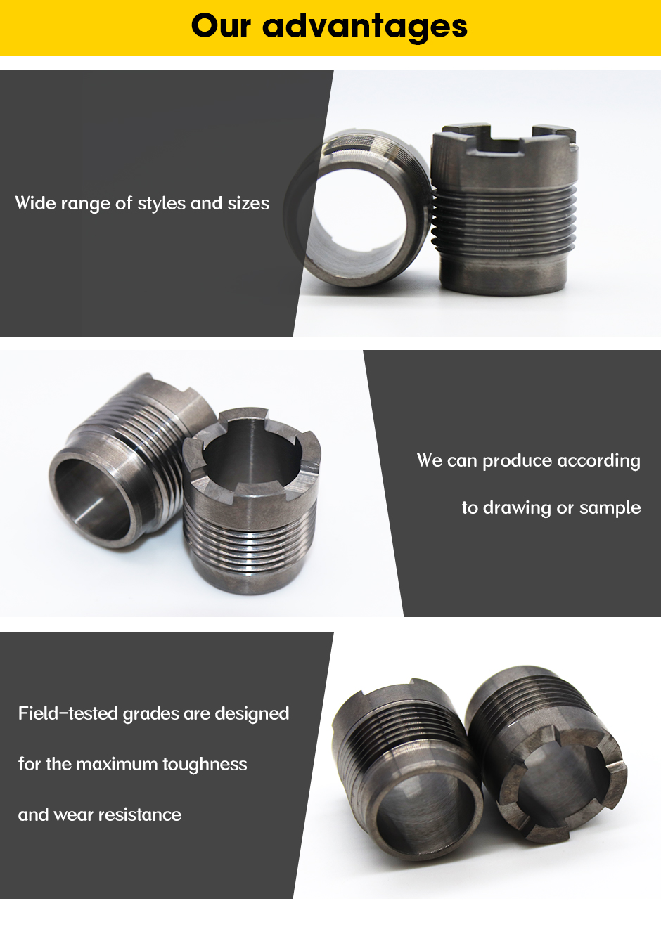 Imamo tovarno, specializirano za volframov karbid, dobavljamo tudi številne druge izdelke, ki jih ne moremo izdelati. zavezani k zagotavljanju najboljših izdelkov za tiste, ki želijo dobiti izdelke dobre kakovosti in najboljše cene.