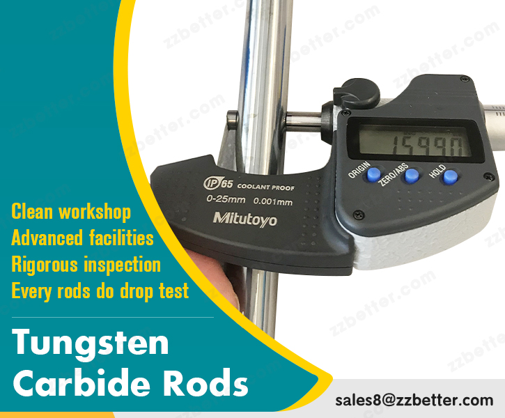 Без обзира на сировину, производни процес или готове карбидне шипке, у целом процесу мора постојати строг систем контроле квалитета. Посебно за готове карбидне шипке, не само да проверавајте величине комад по комад, већ и физичке перформансе као што су тврдоћа, густина, чврстоћа против савијања, металографски много тога.