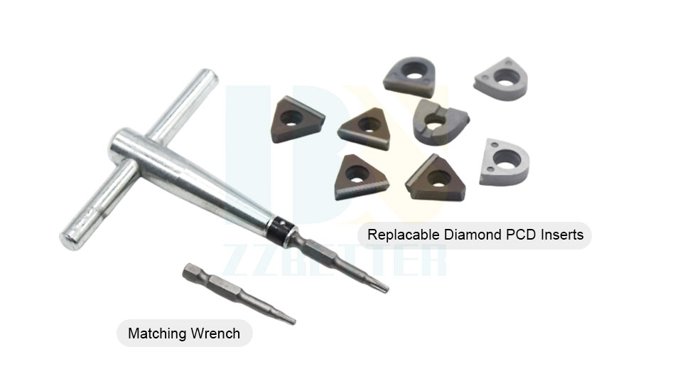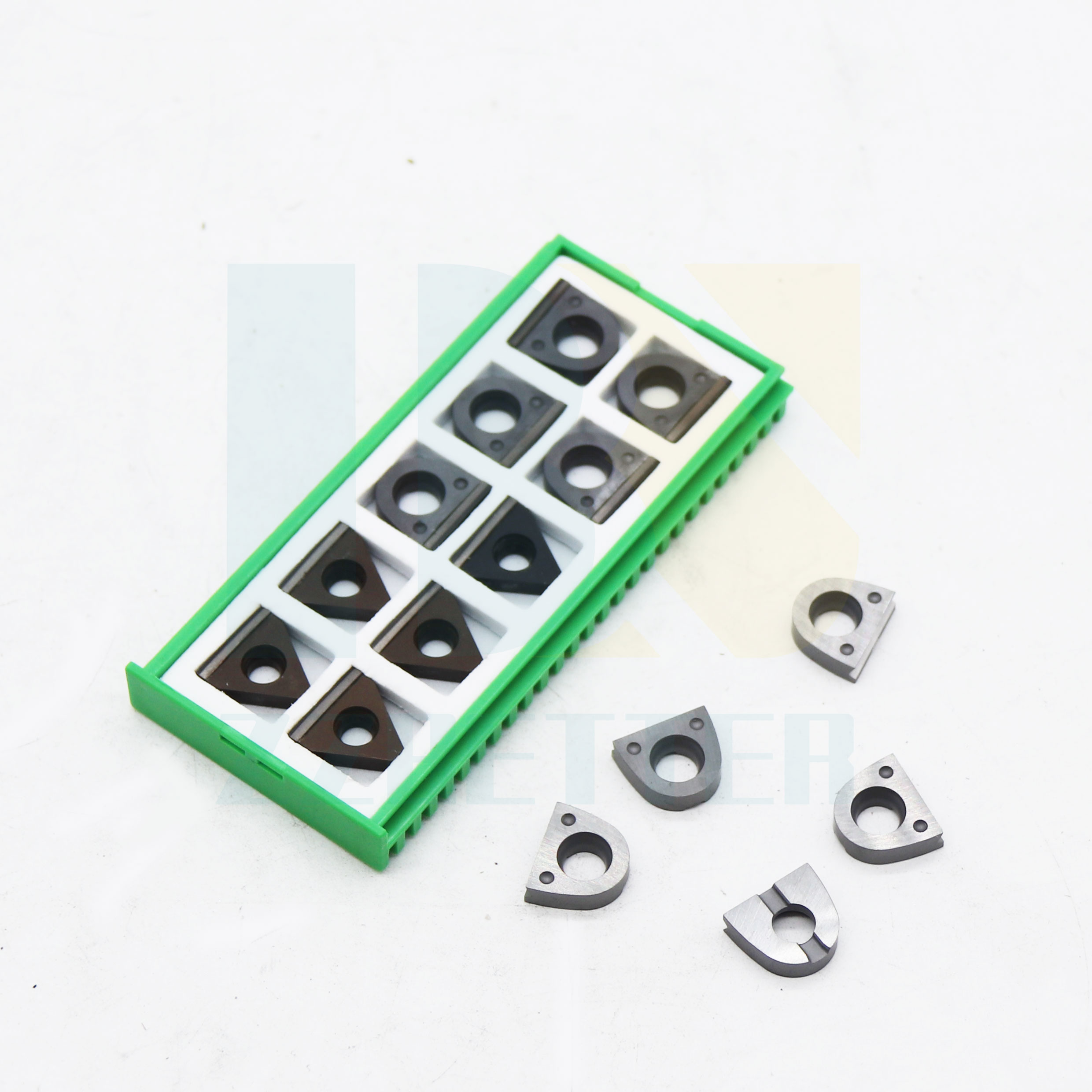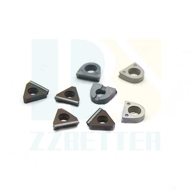 PCD тегермән алдыннан кисүчеләр өчен алыштырыла торган бриллиант PCD (Поликристалл Алмаз) кыстыргычлары төгәл эшләнгән компонентлар, таләпчән материалларны эффектив һәм чыгымлы эшкәртү өчен бик мөһим. Гадәттә кечкенә һәм нечкә формалашкан бу кыстыргычлар поликристалл бриллианттан ясалган, искиткеч каты һәм кием каршылыгы традицион кисү кораллары материалларыннан күпкә өстен. Аларны җиңел алыштыралар һәм тегермән алдыннан кисүче тәнгә урнаштыралар, кисүченең эш срогын сизелерлек арттыралар. Аларның төп максаты - агрессив алдан эшкәртү, ул еш композицион материал эшкәртүдә һәм кыр эшкәртү кебек агач эшкәртү кушымталарында еш кулланыла. Тузган кыстыргычны алыштыру тулы кисүне алыштыруга караганда кыйбатрак булганга, алыштырыла торган кыстыргычларны куллану эш вакытын һәм аңа бәйле чыгымнарны киметә. Эш кисәге чиста, төгәл кисүне гарантияли торган PCD-ның махсус кисү мөмкинлеге аркасында алга таба бетү процедураларына әзер. Төрле югары төгәл җитештерү процессларында бу ысул җитештерүне һәм материал куллануны максимальләштерә.